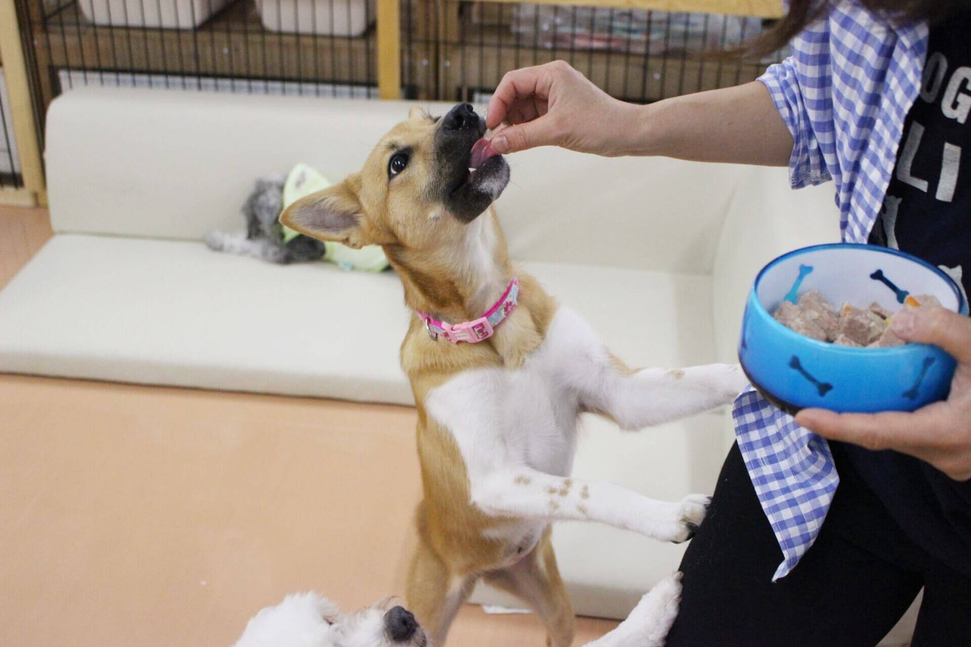 愛犬に与える際には、一口サイズのブッチをいくつか用意し、錠剤を入れていないものを先に手から食べさせてから、錠剤入りを差し出します。