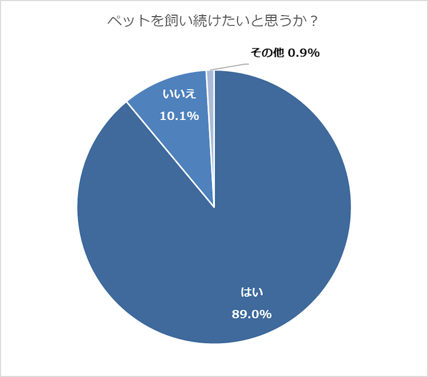 このように、生活にプラスの効果を与えてくれることもあり、今後もペットとの暮らしを続けたいかどうか、という問いには、89.0%と約9割の方が「はい」と回答しました。