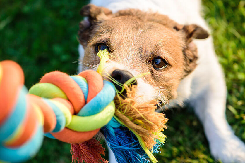 ロープやタオル等で、引っ張りっこをしてあげましょう。