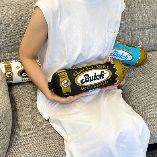 “無添加”ドッグフード『ブッチ』のクッション(ブラック)通販ページです。ブッチ・ジャパンのオリジナル特製クッションです。