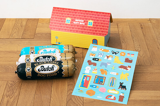 “無添加”ドッグフード『ブッチ』のギフトボックスセット(各種3本)通販ページです。「ギフトボックスセット」は、ギフト用のプレゼントとして最適です。