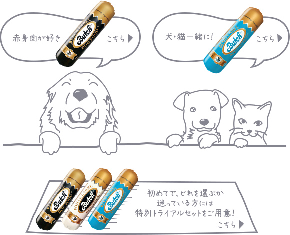 より肉好きな愛犬にはビーフとラムの赤身肉が主体のブラック・レーベルを、犬・猫両方のフードを兼用したい場合はブルー・レーベルをお試しください。